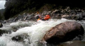 The walk to Totara Flats is a pleasant track along river terraces above the gorge. There are a few glimpses of the river from the track and it’s worth walking down and scouting the rapids at Clem Creek and Makaka Creek (both have swing-bridges) as these are the biggest rapids and are reasonably easily accessed from the track. It’s also possible to put in at either of these locations for a shorter day trip.