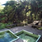The next day is much the same as the first; twisty Gr2 through a steep native valley. After 7km you’ll reach the 2nd hot-pool on the river, the more publically-accessible Mangatutu hotsprings. You’ll see the deck perched high on the cliff river-right, but paddle down a little more to the rocky beach, and head up the track. There’s a road-end, campspot, toilet, and picnic area up there too.
