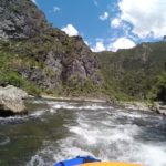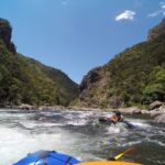 Once on the Mohaka (BH37 834 697), it’s a little bony until the Taharua flows in, then you’re away. There are only 2 notable Gr2+/3 rapids on this trip, the first being Sphincter (BH37 859 690). This is a short network of slots, and at the time we paddled it (20cumecs) there was only 1 obvious way through, in the centre. It’s narrow, only 30m or so in length, and there is a tricky rock midway down. It felt like Gr3, but at different flows, it would act differently. Scouting and portage is easy, river left.