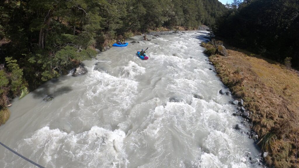 Fairly continuous roller-coaster style rapids continue all the way down towards the Avoca confluence, after which the river becomes wide and braided. Despite this, you’ll still be travelling surprisingly fast, which makes for a rather enjoyable sightseeing tour of the lower river and a chance to reflect on the fast-paced adventure. Keep an eye out for the Pinnacles – a group of unusual gravel spires on a slope above the river on your way down. As you near the takeout, be sure that everyone in the group is aware of the location. Hopefully, the weather will also cooperate in this final section, as it is exposed to wind gusts from most directions!
