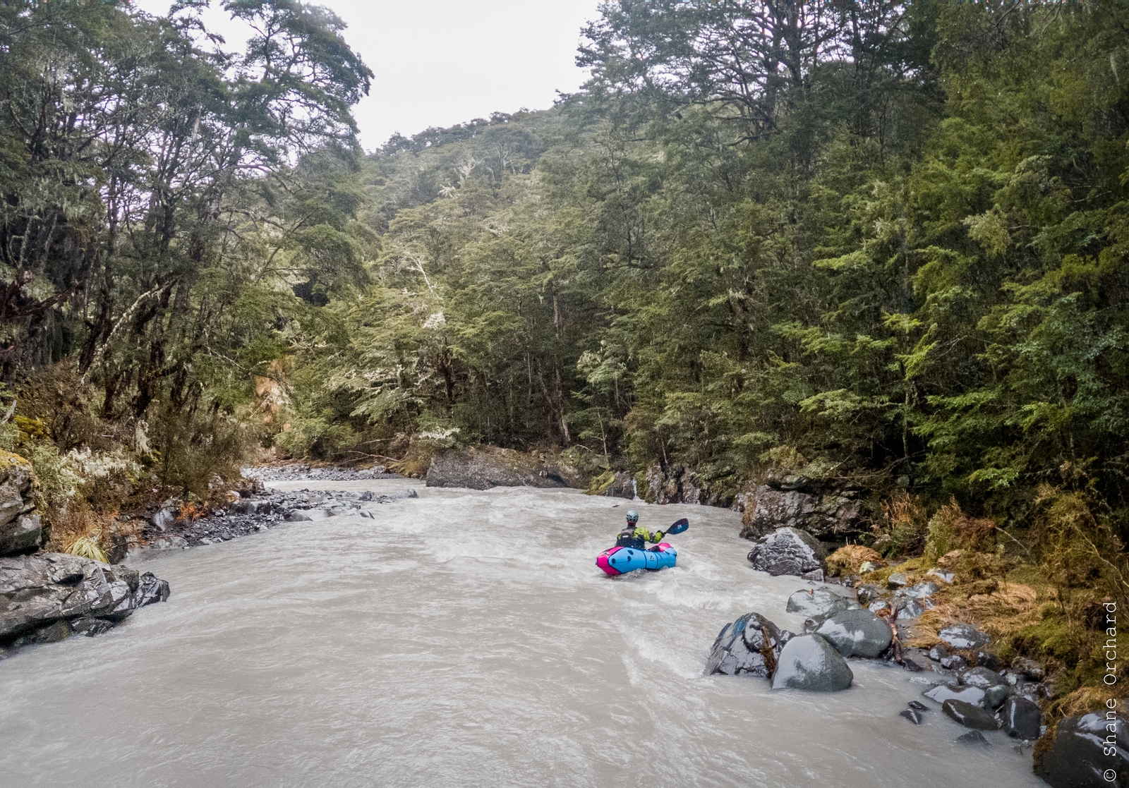However, too much water is likely to be unmanageable around some of the blind corners, especially in the upper gorges above Tarn Creek. Therefore, you want these sections to be runnable but not too high. Also, bear in mind that the flow increases quickly with inputs from the side streams. Starting from the flat at West Harper Hut or the next flat upstream is likely to offer a good compromise between water depth and manageability.