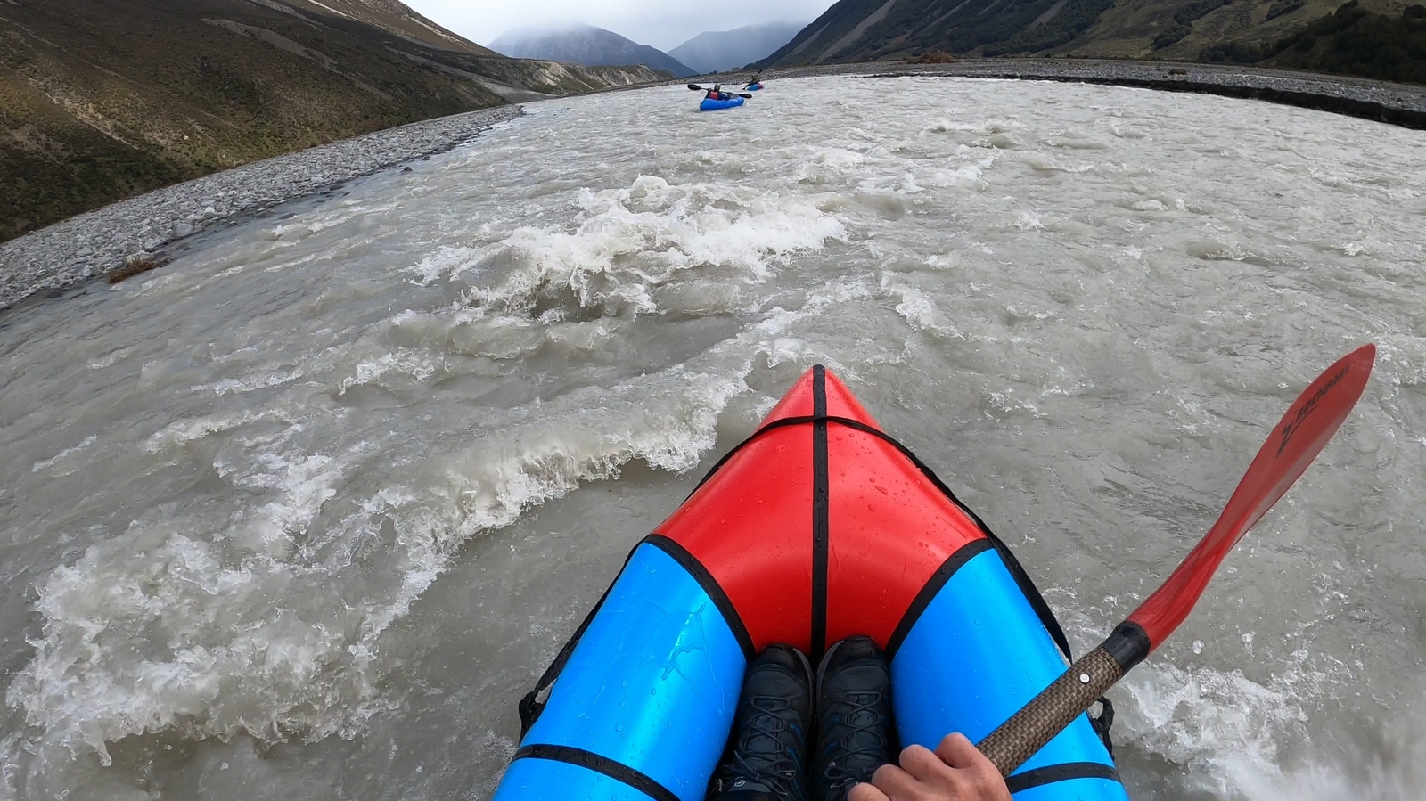 For reference, on the day of this trip report, the Rakaia was running at 550 cumecs coming down from a high of 4000 cumecs three days prior, and the Waimakariri below Otarama was 500 cumecs. There had been 100 mm of rain at Castle Hill two days prior, and there was a small amount of additional rain (around 20 mm) on the night before we got on the water (plus a little snow!).