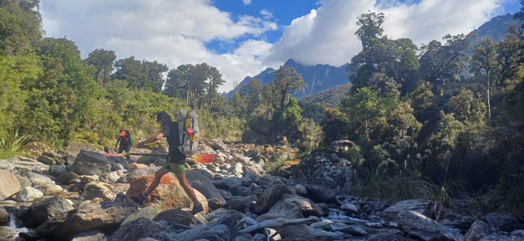 No doubt many packrafters have glanced upstream from the confluence of the popular Copland run and wondered what’s up in the gorge of the Karangarua. The answer is some epic whitewater, lots of sieves, some portages and stunning scenery. This is not a run for inexperienced paddlers, but if you are a solid Grade IV packrafter who can read-and-run big boulder-garden style rapids and can recognise when things are steepening up (ie, class V) and it might be time to take the dry line, (ie, portage) then this is a great adventure trip.