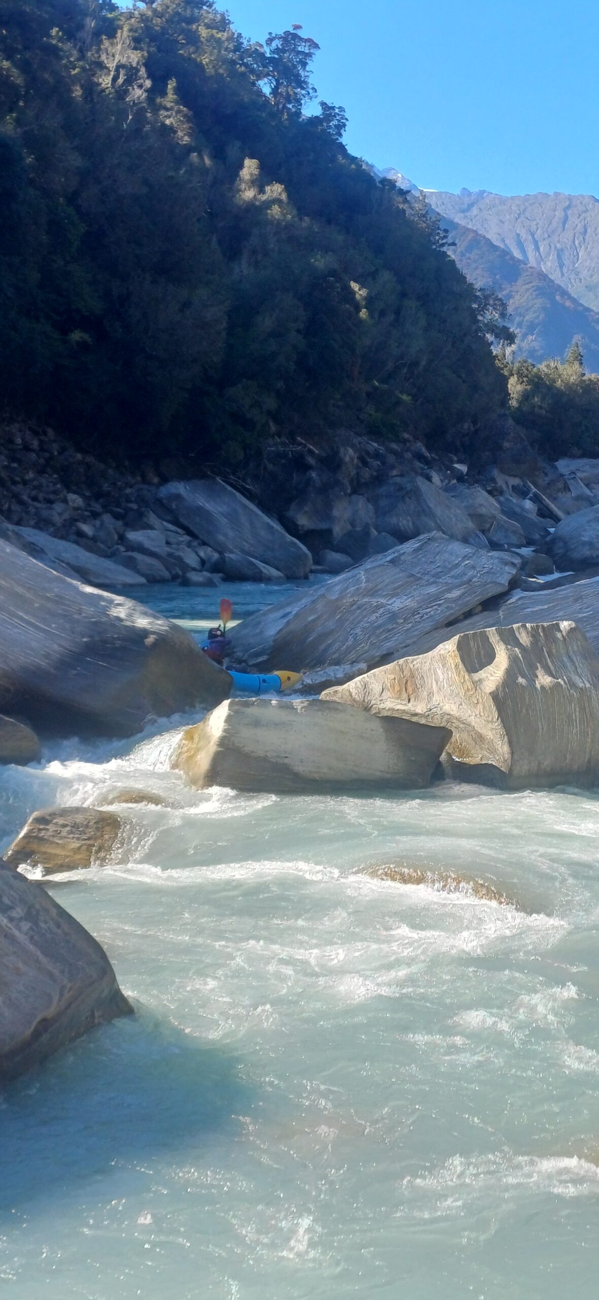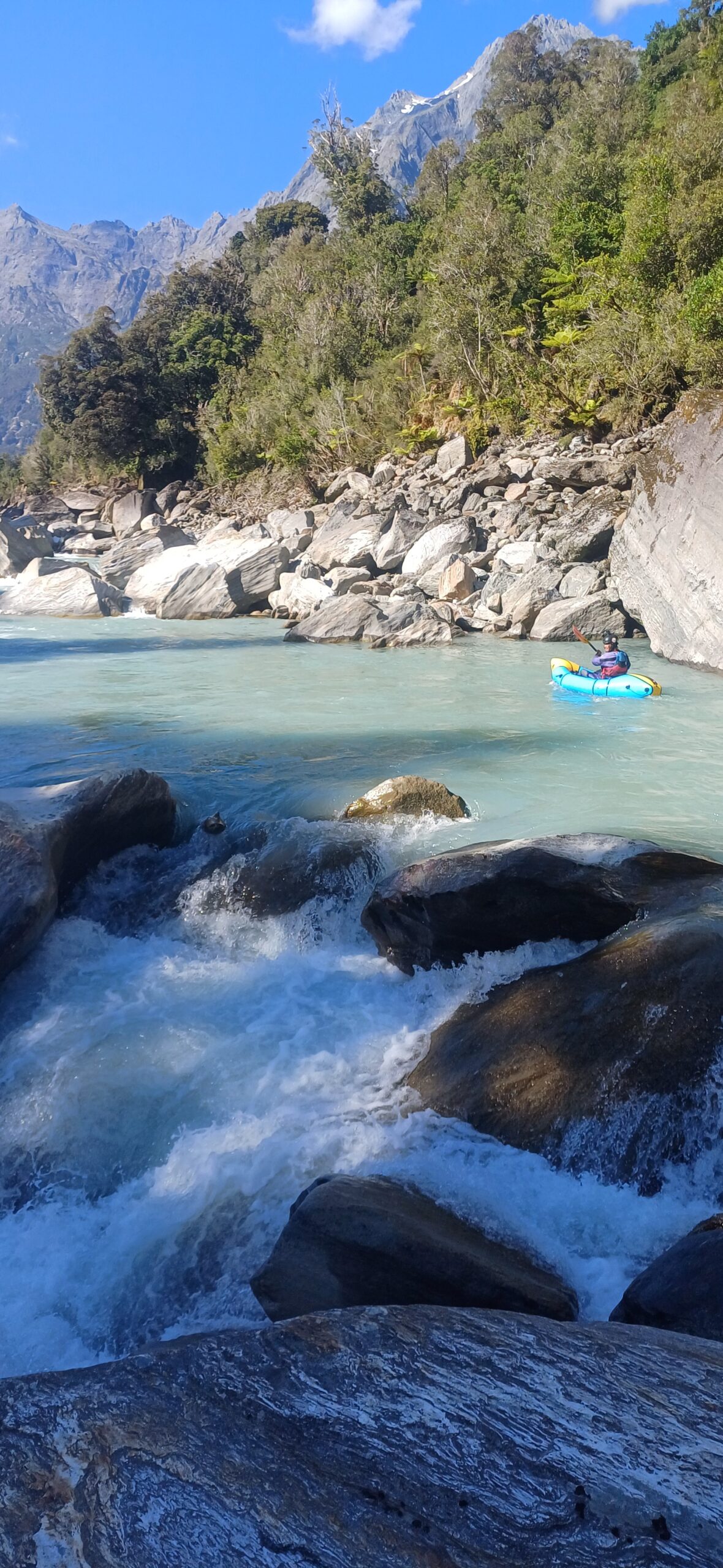 No doubt many packrafters have glanced upstream from the confluence of the popular Copland run and wondered what’s up in the gorge of the Karangarua. The answer is some epic whitewater, lots of sieves, some portages and stunning scenery. This is not a run for inexperienced paddlers, but if you are a solid Grade IV packrafter who can read-and-run big boulder-garden style rapids and can recognise when things are steepening up (ie, class V) and it might be time to take the dry line, (ie, portage) then this is a great adventure trip.