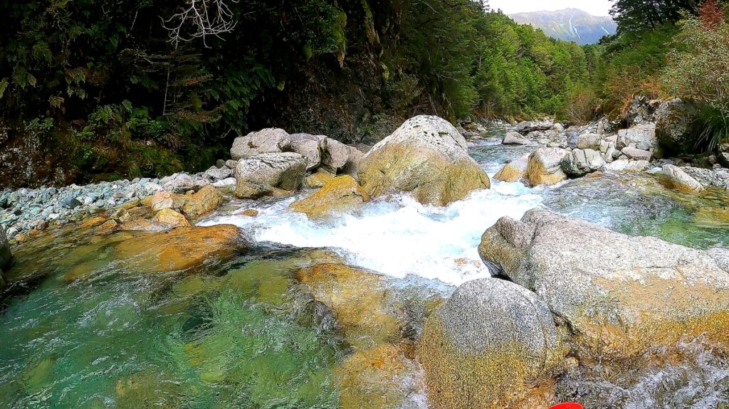 If there is sufficient water expect class II/II+ in this lower part of the run, with some scrappy sections down to the Eglington confluence, then class I and II down to the takeout point on Te Anau Milford road.