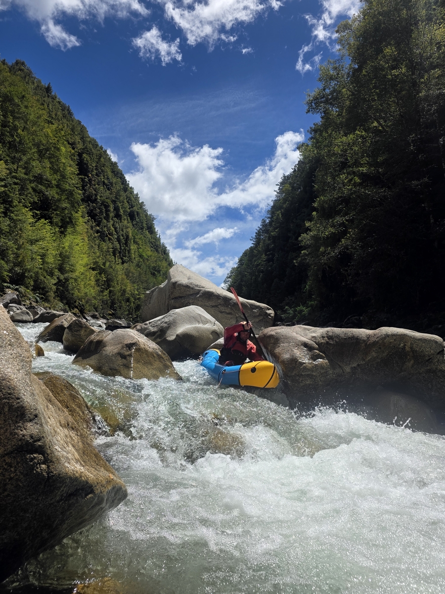 Most is boat-scoutable but there may be the odd bank scout/portage and there are sieves and tree hazards so make sure you’re comfortable with this style of boating if you’re heading in. At paddling flows, everything can be portaged.