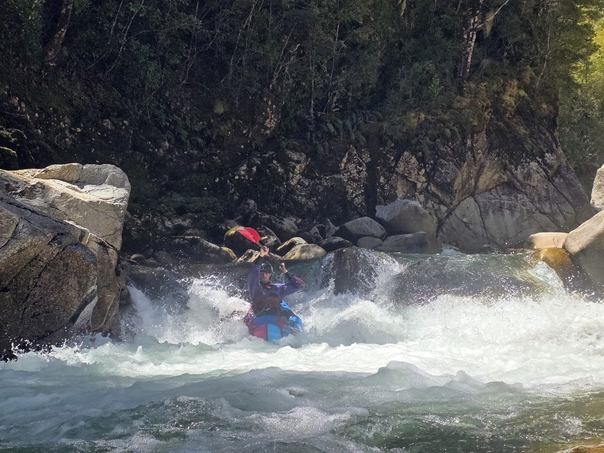 Read the Mōkihinui (II+/IV) for more information. It’s worth noting that the river volume almost doubles as the South Branch comes in, and the first couple of rapids are a little harder than if you were to put on at Specimen Creek.