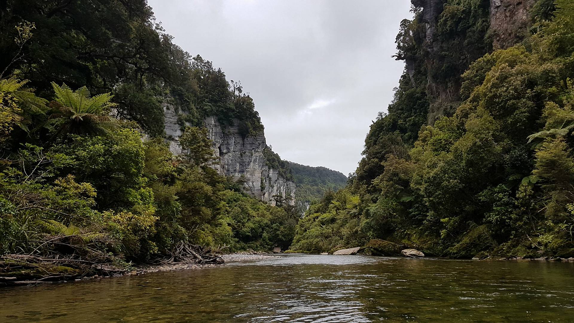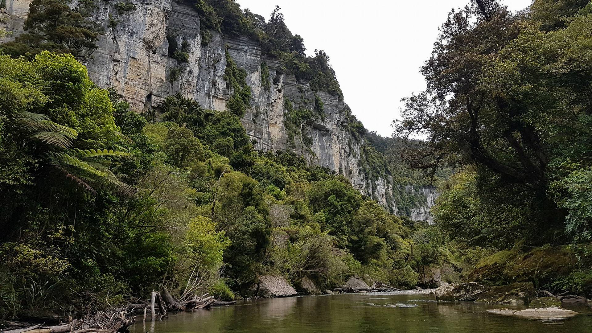 A short scenic float through a huge limestone gorge, this could be the last section of a trip on the Inland Packtrack, or a short out and back from Punakaiki.
