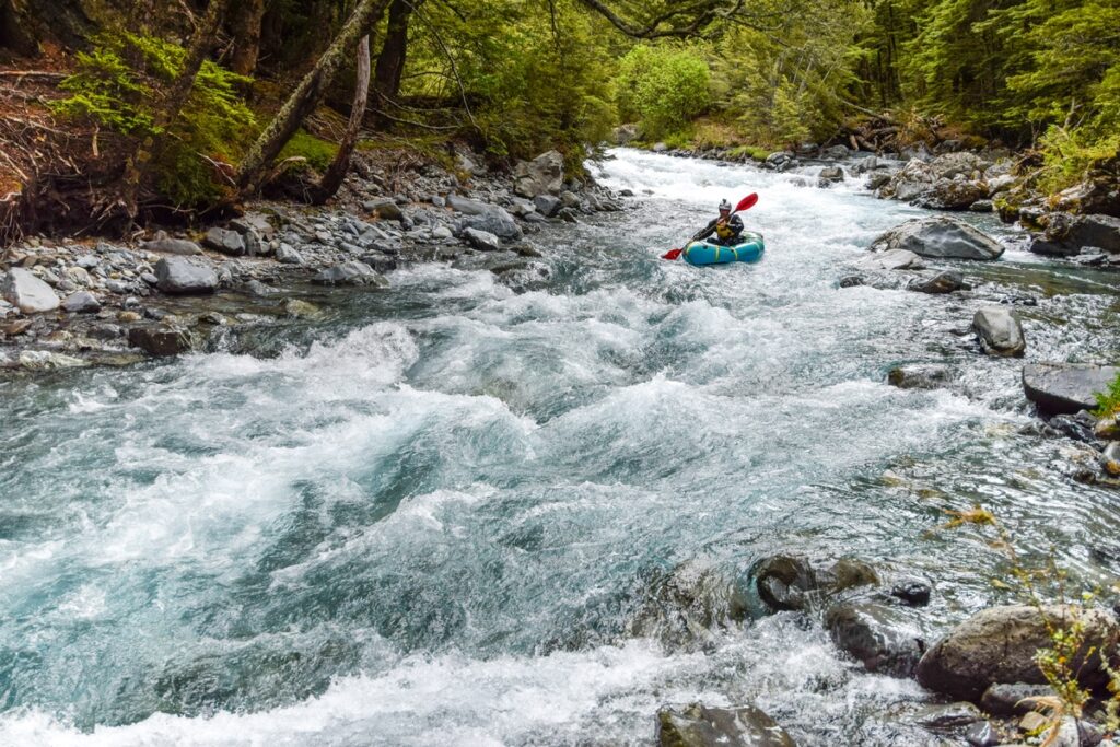 The slip rapid itself is a manky grade III boulder bash rapid that runs up against the same true right bank. This rapid is quite steep and has some bony parts that are easy to get pinned or wrapped on. Take note of this for the descent – you’ll probably want to be portaging on the paddle back.