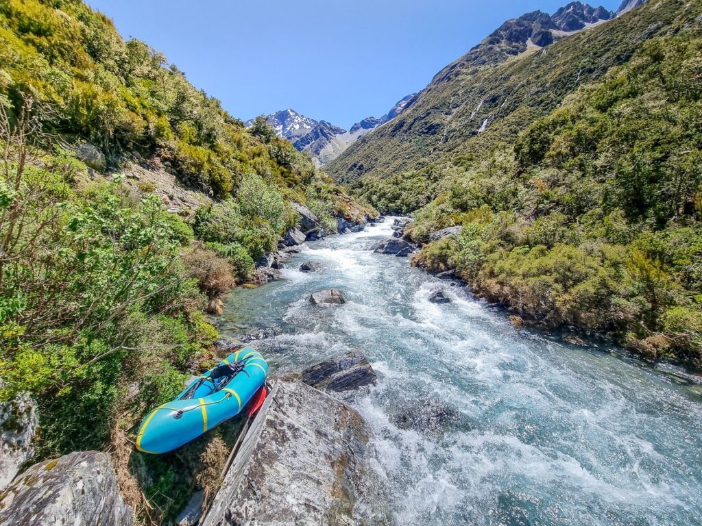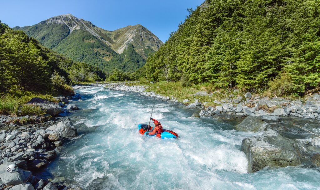 There is one mandatory river crossing at the South Temple Hut. There is no easy crossing point but the best one (a relatively even section of riverbed) is located 100 m downstream of the hut. Be prepared to deploy the pack raft to cross!