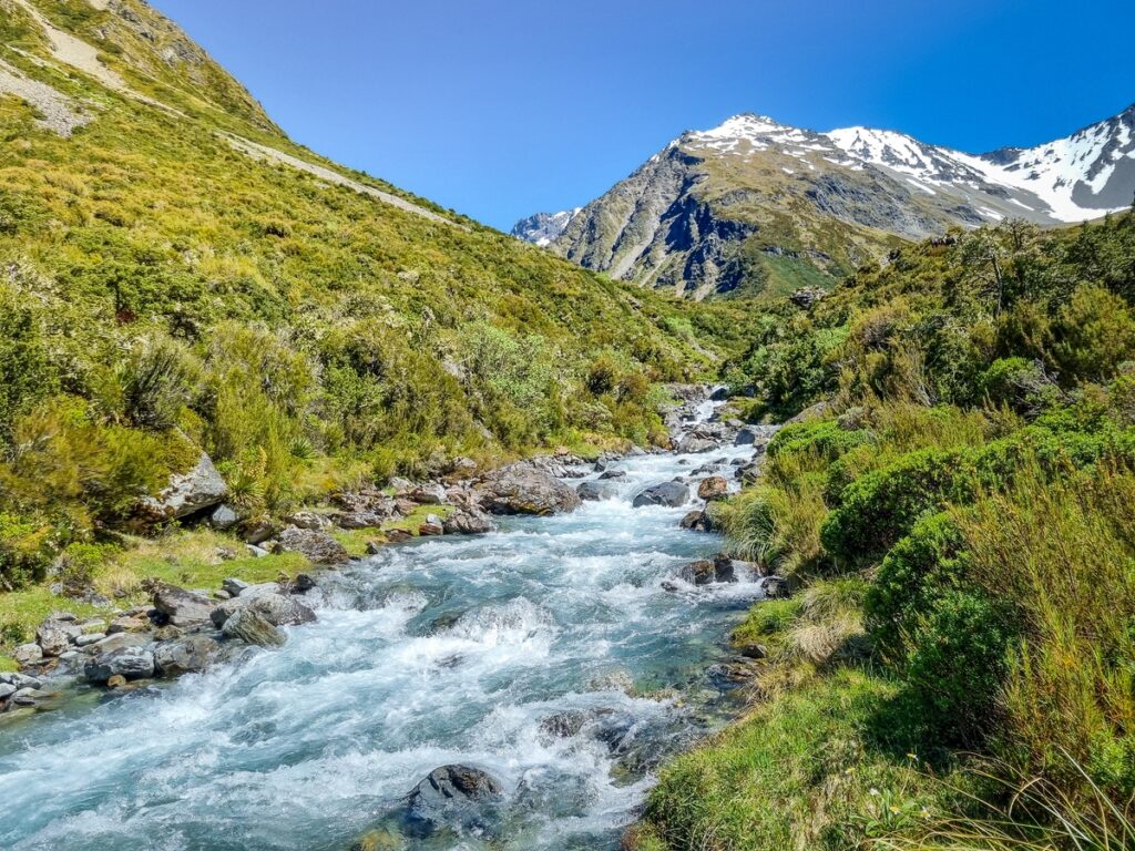 From the Temple Campsite, head up valley, then cross the North Temple Stream. The South Temple Track follows the true left of the river, with plenty of options to scout the stream as you go.