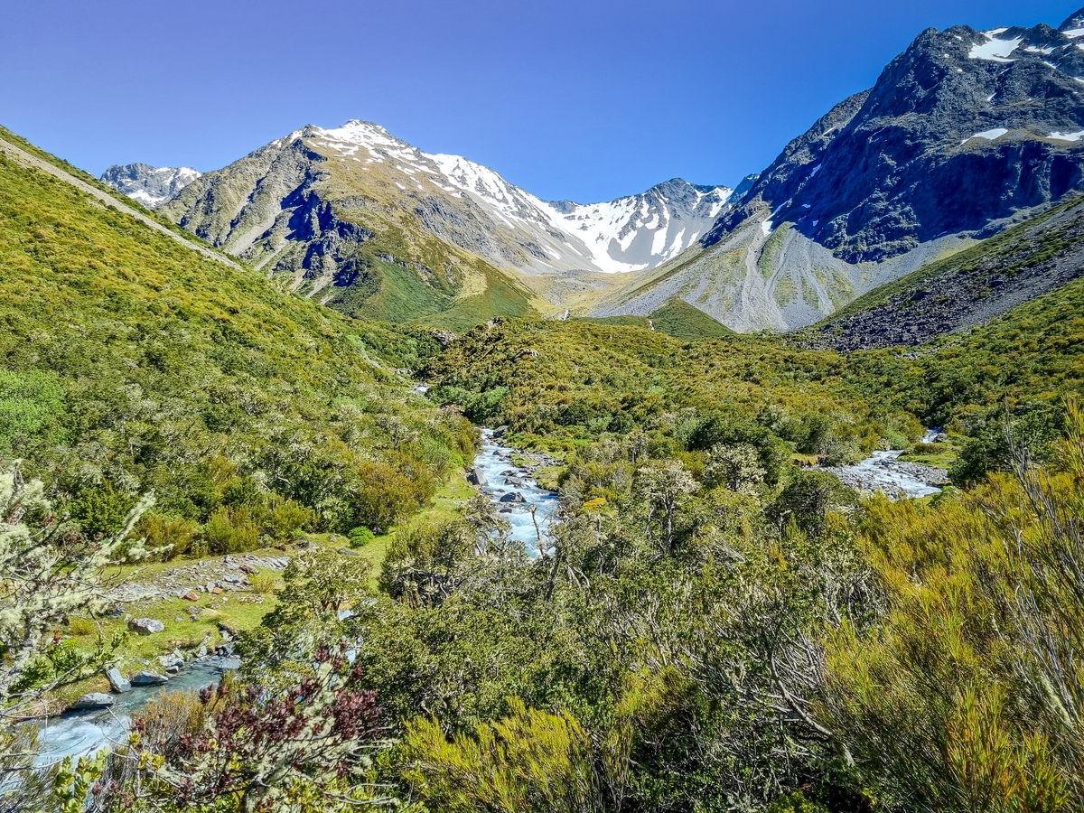 From the Temple Campsite, head up valley, then cross the North Temple Stream. The South Temple Track follows the true left of the river, with plenty of options to scout the stream as you go.