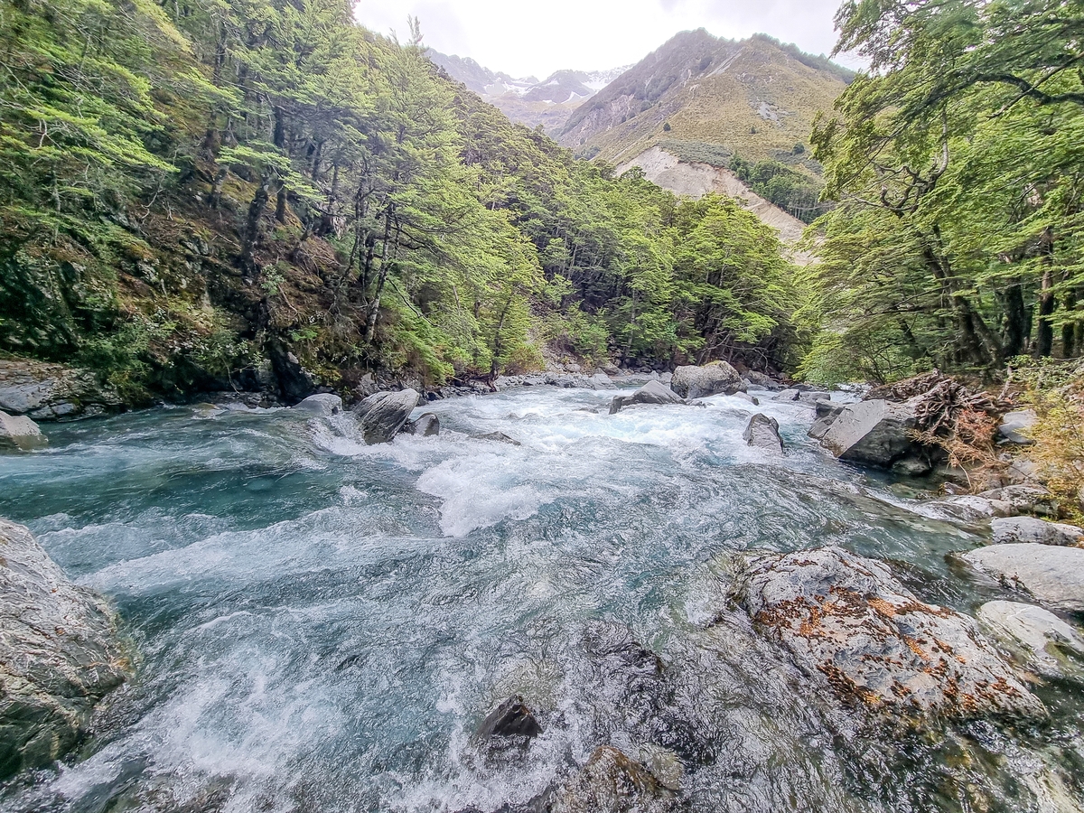 Between here and the hut, the track is sometimes at riverside and other times 100 or so meters away, so there’s less opportunities to see what you’re in for or notice any strainer hazards.