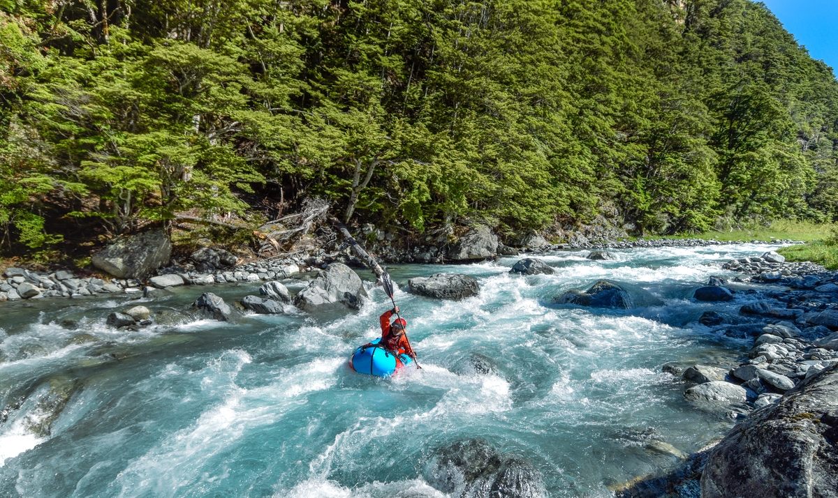 There is one mandatory river crossing at the South Temple Hut. There is no easy crossing point but the best one (a relatively even section of riverbed) is located 100 m downstream of the hut. Be prepared to deploy the pack raft to cross!