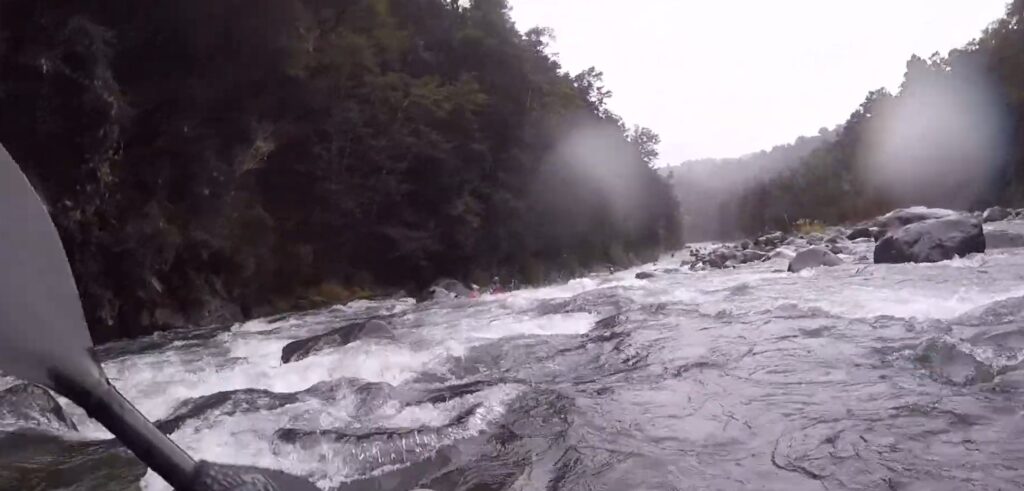 Approaching the mother of all Tongariro Buffer wave rapids