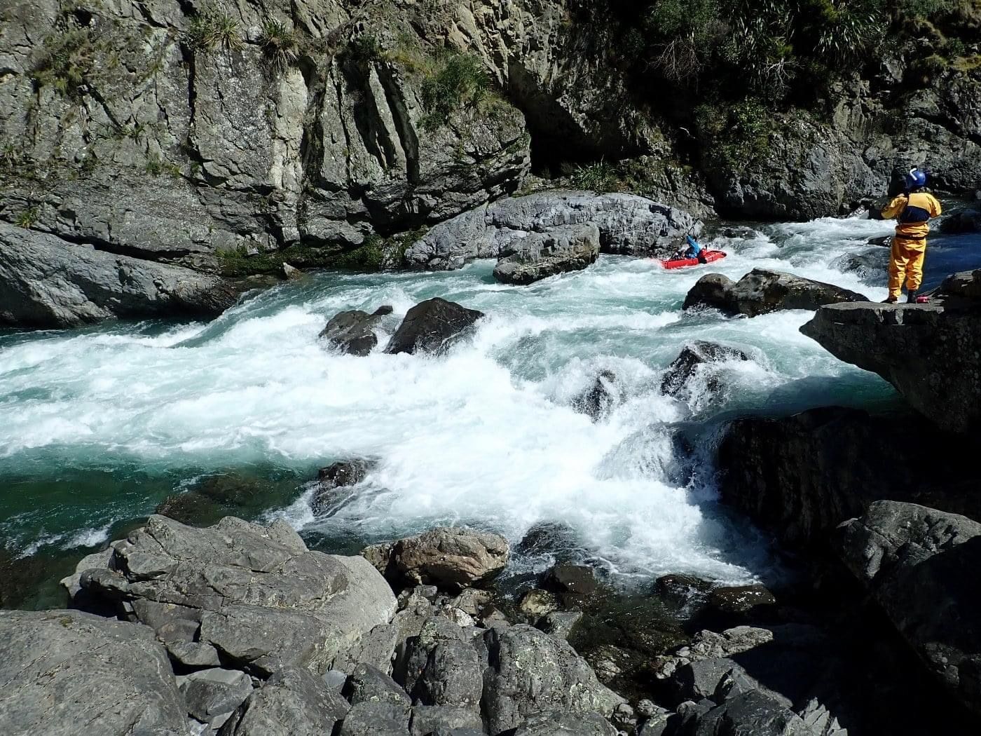 The crux of the Otamateanui is about 500m down from the start where the stream drops through a mini gorge for 400m. There is an abundance of wood so you must scout everything. The first set of 3 drops (Triple Dipper) is great fun in the boat with each consecutive drop getting larger. Scout the whole sequence (including the compulsory portage below the third drop) before getting back in your boat. Set a safety person and a gear recovery person and eddy out after the third drop to execute your portage plan for the Leap of Faith rapid.