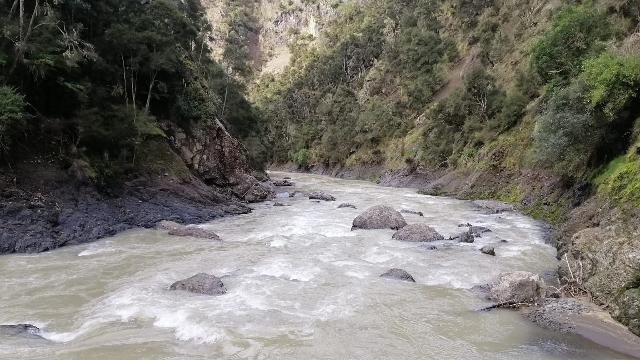 Above the usual run there is a section that requires even more flow to be runnable. This short, tight section begins at the bridge near the Okoeke Stream and is highly rain-dependent. It features narrow channels and technical drops, including Hukawai Falls, a small drop around the first corner. Hukawai is usually too tight for packrafts and may require portaging. This section should be scouted carefully.