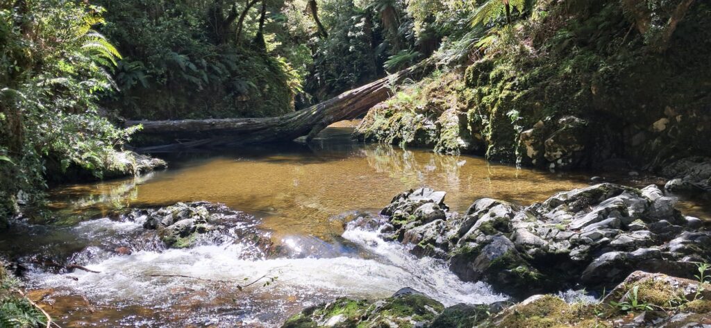 Next, watch out for 4WD vehicles, as you head head south. Continue, following signs for ‘Hydro Valley Rd’. You’ll cross the Whakatīkei River – but its probably too small to try putting on there. The road follows the river through to ‘Orange Hut’ (4WD accessible and apparently not so nice to spend the night in). From here, follow signs towards ‘Norms Crossing’, which is where the road meets the river, just downstream of the confluence of the Titi and Whakatīkei.